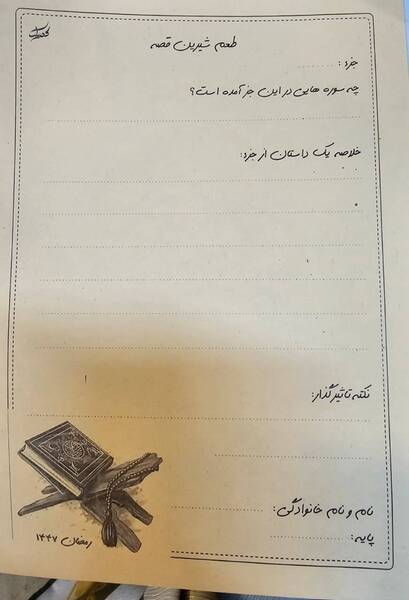 1- انتخاب و طرح یک داستان از جزء قرآن همان روز